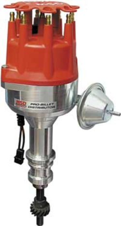 “The Street Pro-Billet Distributors are the perfect choice for powerful engines that see plenty of street time. A vacuum advance canister provides improved economy and an accurate mechanical advance lets you dial-in an advance curve to match your driving needs. The diameter of the CNC machined billet aluminum housing is 5/8†smaller in diameter compared to the large stock housing. This makes for a cleaner appearance in the engine compartment plus creates room for other accessories. Inside the housing a heavy duty sealed ball bearing is used to guide a polished steel shaft. A reluctor with eight precision paddles is attached to the shaft and triggers the magnetic pickup which signals the MSD Ignition Control to fire. This combination produces accurate trigger signals that remain stable throughout the entire rpm range of your engine and is completely maintenance-free.